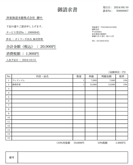 The invoice described above is issued on a per-case basis. In actual business operations, however, it is common to consolidate multiple cases and issue invoices on a monthly closing basis. CSOne addresses this requirement through its “Closing Invoice” functionality.