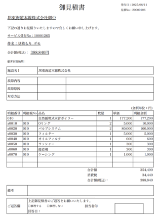 Let’s assume a maintenance proposal for a boiler installed at the Tokyo factory of a fictional client, JR Tokaido Line Co., Ltd.