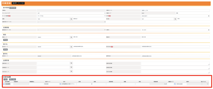 Saving the details from Step 2 displays a confirmation screen. After confirming that all entered details are correctly reflected, the formal quotation is created. Click the “Quotation” button in the upper left.